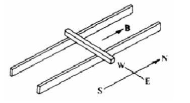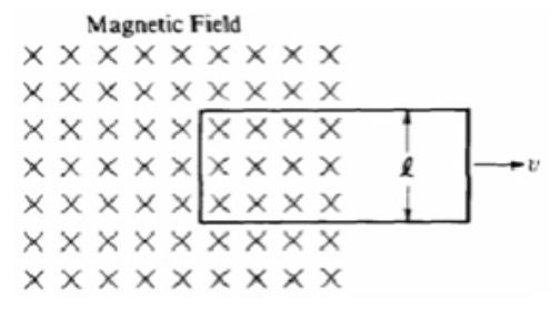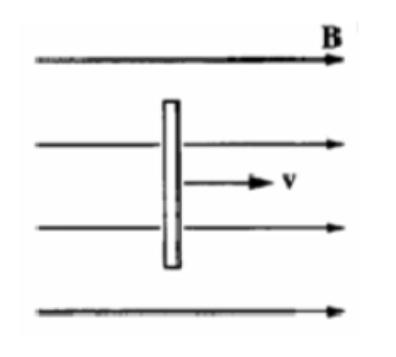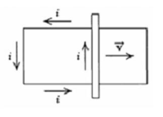 The figure shows a bar moving to the right on two conducting rails.