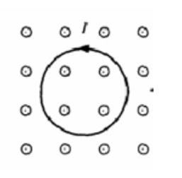 There is a counterclockwise current I in a circular loop of wire