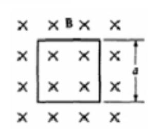 the plane of the loop as shown. The loop is 0.50 meters on a side and