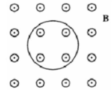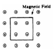 situated in an external magnetic field directed out of the page as