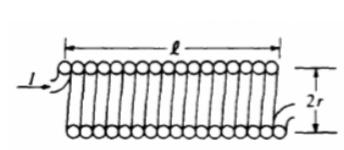 The cross section above shows a long solenoid of length l and radius r consisting of N closely wound turns of wire. When the current in the wire is I, the magnetic field within this solenoid has magnitude Bo (A) B. A solenoid with the same number of turns N, length l, current I, but with radius 2r, would have a magnetic field with magnitude most nearly