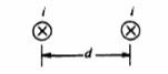 Relate to the two long parallel wires shown below. Initially the wires arc a distance d apart and each has a current i directed into the page. The force per unit length on each wire has magnitude F0.