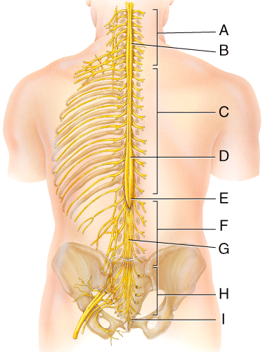 In the diagram which structure contains nerve roots that arise from the lumbar, sacral, and coccygeal region of the spinal cord?