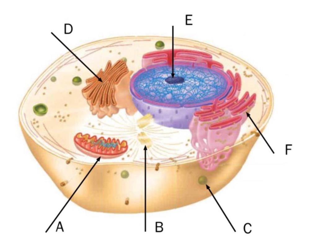 This diagram depicts a eukaryotic cell. Match the letter to the correct structure.