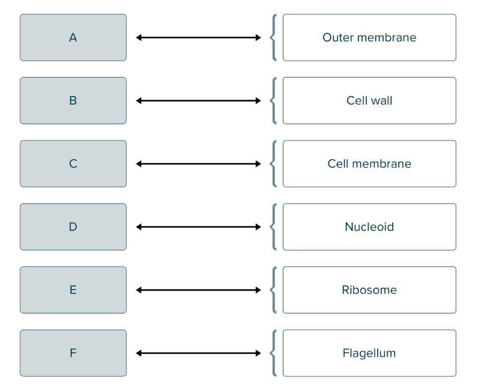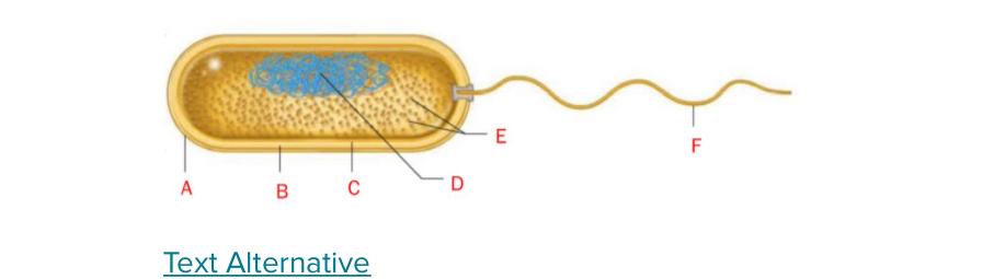 In this figure of a bacterial cell, which of the following labels are correctly matched with their appropriate structures?