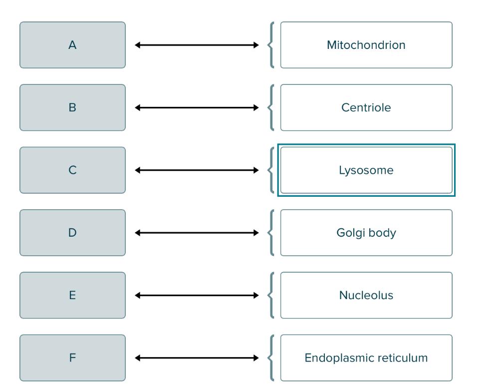 This diagram depicts a eukaryotic cell. Match the letter to the correct structure.