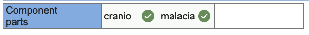 Break down the following word into its component parts. Enter each component part into one cell, with no slashes or spaces. Use as many cells as necessary – you may not need all cells provided. If no entry is required, leave the cell empty. For example, nasophyarynscope = naso | pharyngo | scope
