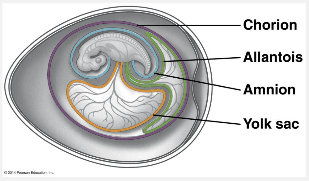 Reptiles possess all of the extraembryonic membranes that mammals possess: the chorion, allantois, amnion, and yolk sac. After forming, these membranes provide a “life-support system” for further embryonic development.
