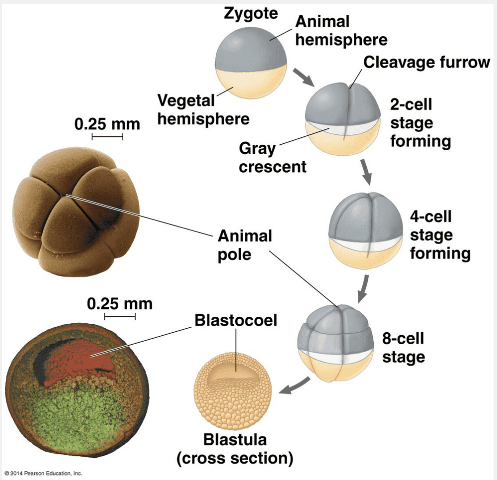 - only terrestrial vertebrates have zygotes that go through a process of cleavage following fertilization