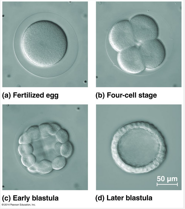 Once fertilization is complete, the zygotes of many animals, both marine and terrestrial and invertebrate and vertebrate, go through a cleavage stage in which the cell is rapidly divided into many smaller cells.