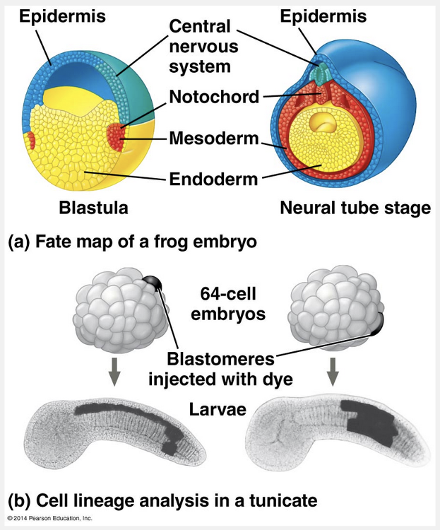 This type of diagram can be produced by tracing the ancestry of embryonic cells through direct observation with a microscope. In the 1920s, German embryologist Walther Vogt used this approach to determine where groups of cells from the blastula end up in the gastrula.