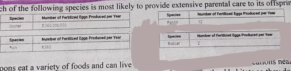 which of the following species is most likely to provide extensive parental care to its offspring?