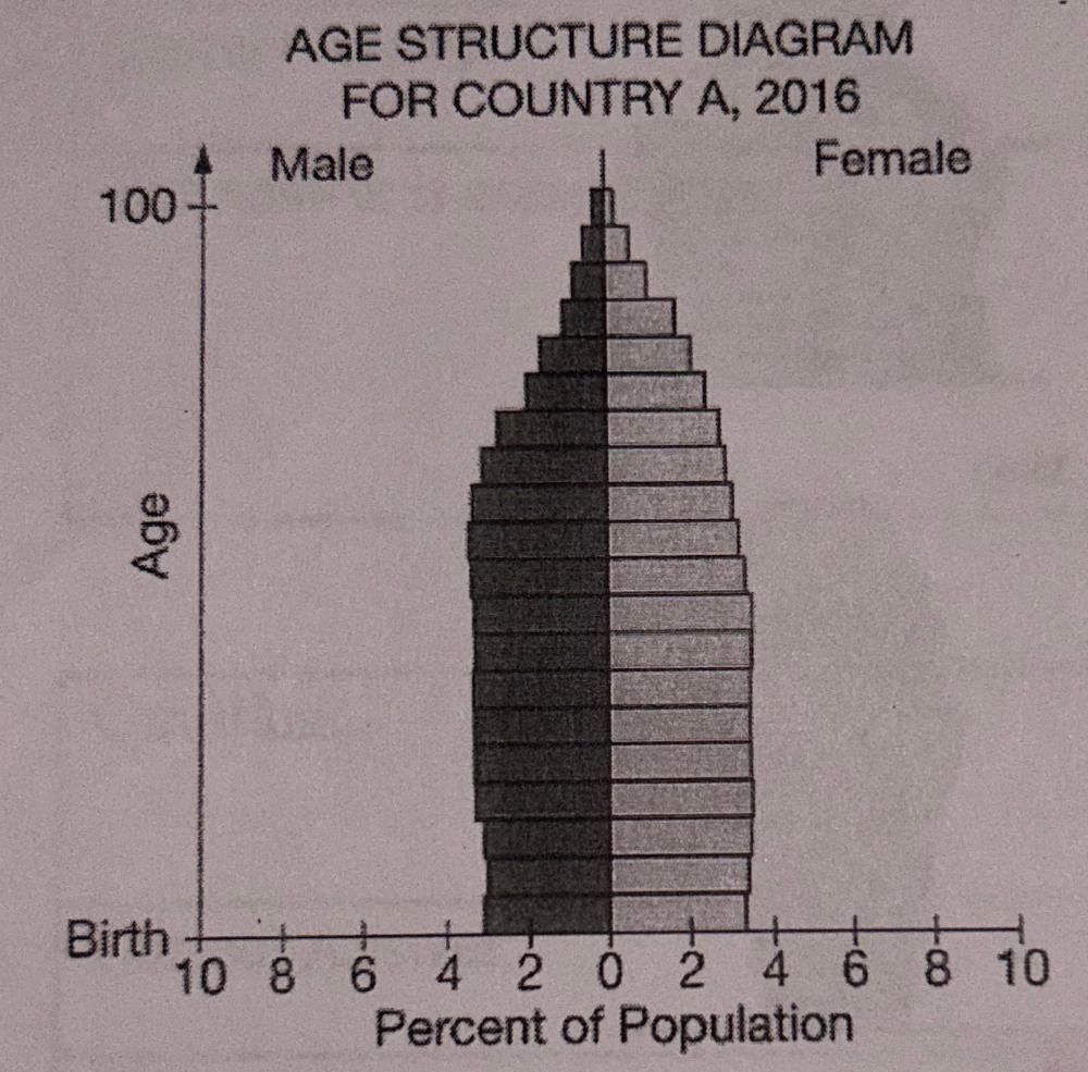 based on the data in the age structure diagram, which of the following best describes the population of country a