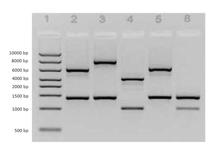 Multiple reactions run with Primer, DNA, dNPT’s, and Buffer concentration kept constant, changing only the annealing temperature in a range of 50°C to 70°C.