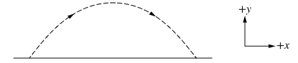 A projectile is launched with initial speed v0 at an angle θ0 above the horizontal. The projectile follows the trajectory shown in the figure.