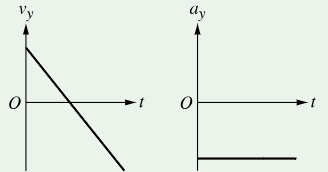Which of the following pairs of graphs best represents the vertical components of the velocity and acceleration vy and ay, respectively, of the projectile as functions of time?