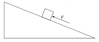 When the constant force F moves the block up the incline at speed v, the power delivered to the block by F is P1. When F moves the block up the incline with speed 2v, the power delivered to the block by F is P2. What is the ratio P1:P2?
