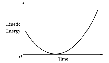 The object was thrown straight up. The kinetic energy decreases, then increases.