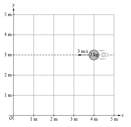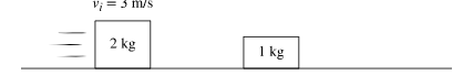 A block of mass 2kg is sliding to the right across a horizontal surface with an initial speed of 3m/s, as shown in the figure. The block collides with a smaller block of mass 1kg that is initially at rest. After the collision, both blocks move to the right. The larger block has a final speed of 1m/s.