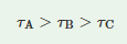 Which of the following correctly compares the net torques τA, τB, and τC, exerted on wheels A, B, and C, respectively, about their centers?