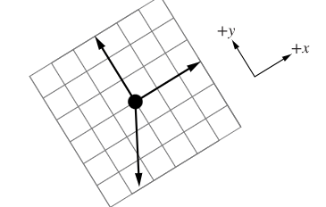 The free-body diagram represents all the forces exerted on an object that is in motion, relative to the +x and +y directions shown in the figure. The relative magnitude of each force is indicated by the length of each vector.