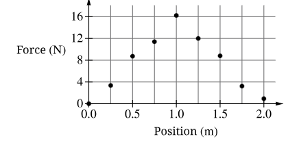 A student pushes a box of mass 2.0kg from rest in a straight line across a horizontal surface. Friction between the box and the surface is negligible. The student records the applied horizontal force as a function of the position of the box and creates the graph shown in the figure.