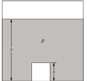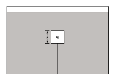 A cube of mass m with sides of length s is completely submerged in a tank of fluid of density ρf and held in place by a string attached to the bottom of the tank, as shown in the figure. The string has a nonzero tension FT.