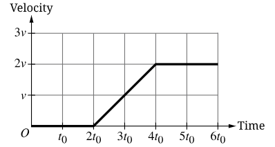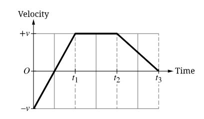 A box moving on a horizontal surface experiences a varying force that changes its velocity. The graph shows the velocity of the box as a function of time.