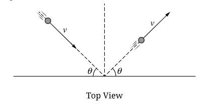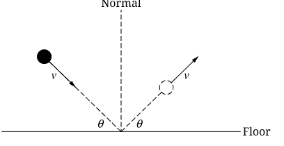 A ball collides with the floor at an angle θ to the horizontal and bounces off the floor at the same angle and speed as shown in the figure.