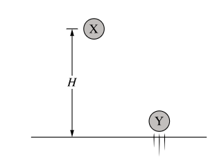 Ball X is released from rest from a height H at time t=0. At the same time, an identical ball, Ball Y is thrown straight up from the ground, as shown in the figure. At time t=tf, Ball X is just above the ground and Ball Y is momentarily at rest at height H.