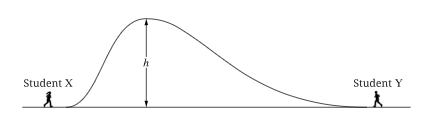 Two students of equal mass run to the top of a hill from opposite sides of the hill as shown in the figure. Each student reaches the top of the hill in the same amount of time, but Student Y needs to run twice the distance because their path is less steep.