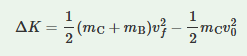 Which of the following is most nearly the change in kinetic energy of the two-block system as a result of the collision?