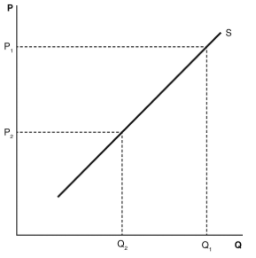 Refer to the accompanying graph. When the price changes from P1 to P2, we will see a(n)