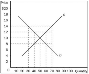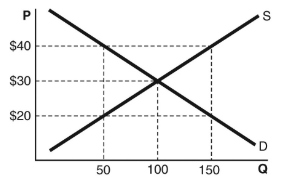 According to the accompanying graph, if the price is $20, there is a ________ of ________ units.