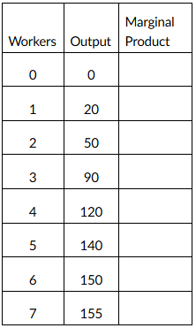 Nimbus, Inc., makes brooms and then sells them door-to-door. Here is the relationship between the number of workers and Nimbus's output on a given day.