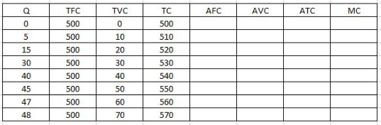 What is the value of the average fixed costs (AFC) when Q is equal to 5? Enter the number below. Do not include a dollar sign. You will not need to round, but you may need to include one digit after the decimal point.