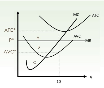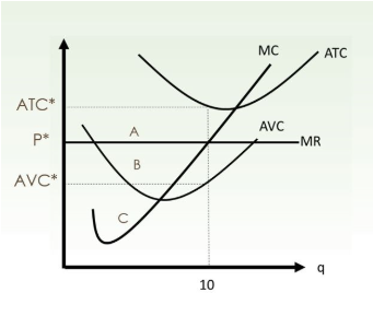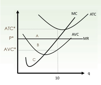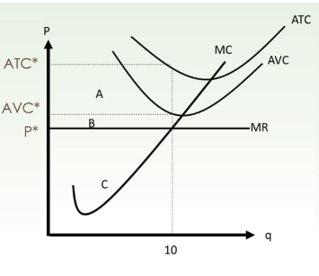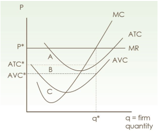 Consider the graph below. Which area(s) represent(s) the firm's total fixed costs?