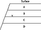 (The following questions refer to Figure 22.1, which shows an outcrop of sedimentary rock whose strata are labeled AD.)