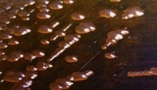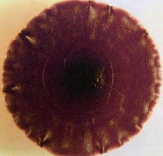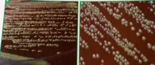 A) Clostridium sporaogenes grown on sheep blood agar and viewed with reflected light