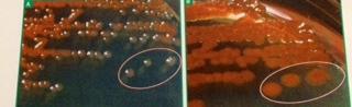 influence of temperature on pigment production when grown in 37 degrees C on left and 25 degrees C on right