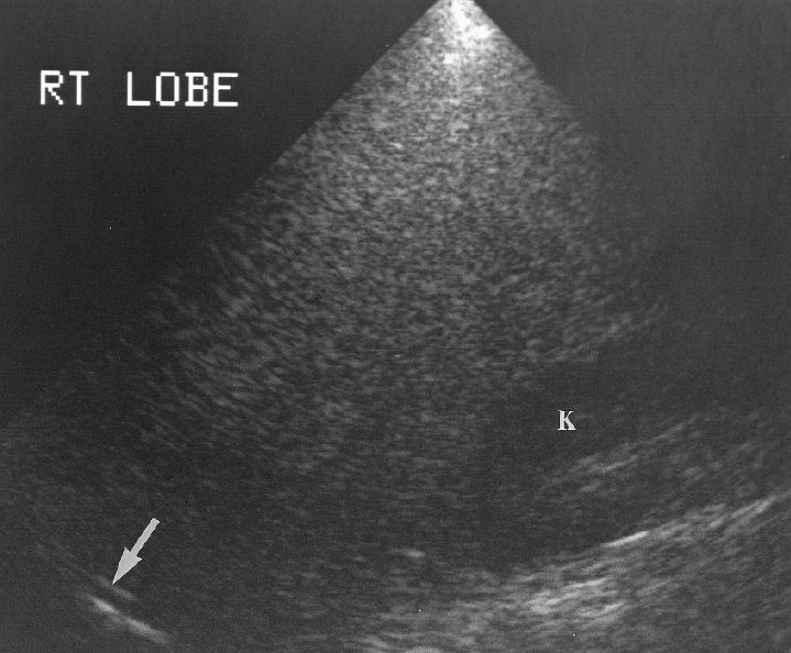 congenital variant extension of the right lobe of the liver beyond the lower pole of the right kidney.