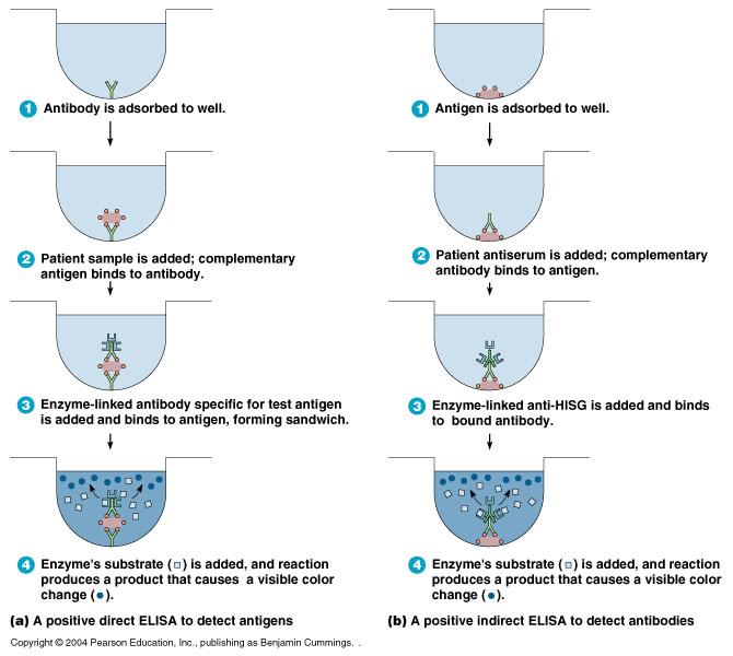 - antigen-antibody reactions are detected by enzyme activity; if the indicator enzyme is present in the test well, an antigen antibody reaction has occurred