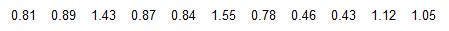 Listed below are the measured radiation emissions (in W/kg) corresponding to cell phones: A, B, C, D, E, F, G, H, I, J, and K respectively. The media often present reports about the dangers of cell phone radiation as a cause of cancer. Cell phone radiation must be 1.6 W/kg or less.