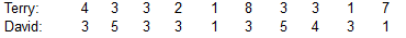 Statistics are sometimes used to compare or identify authors of different works. The lengths of the first 10 words in a book by Terry are listed with the first 10 words in a book by David.