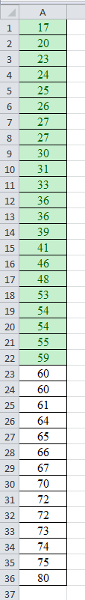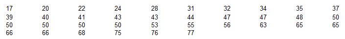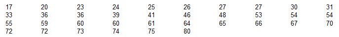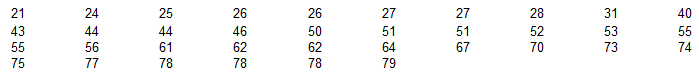 Since L = 18 is a whole number, to find P75, add the 18th value and the next value in the sorted set of data and divide the total by 2.
