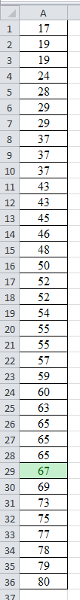 = (80 ÷ 100) x 36 = 28.8 = 29