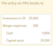 PR Company pays $5,000 in cash and issues stock with a fair value of $30,000 to acquire all of SX Corporation's stock. SX will be a subsidiary of PR.