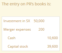 PR Company pays $10,000 in cash and issues stock with a fair value of $40,000 to acquire all of SX Corporation’s stock. SX will be a subsidiary of PR.
