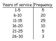 The frequency distribution below summarizes employee years of service for Alpha Corporation.