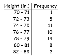 The heights of a group of professional basketball players are summarized in the frequency distribution below.